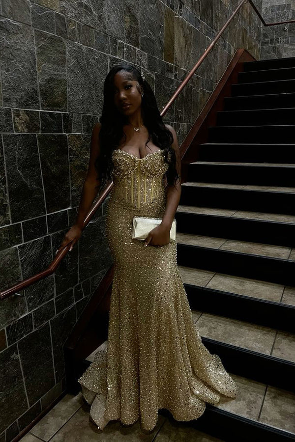 Gold Sequin Mermaid Long Prom Gown, Evening Dress CHP0459